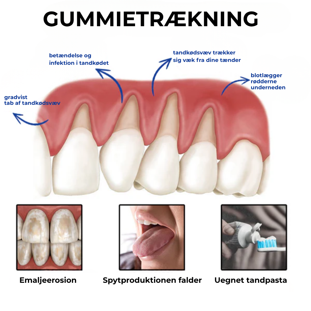 Efter 30-årsalderen slides emaljen naturligt, spytproduktionen falder, og tandkødet bliver mere sårbart over for syreangreb – hvilket fører til tandkødsretraktion, følsomhed og kronisk inflammation.