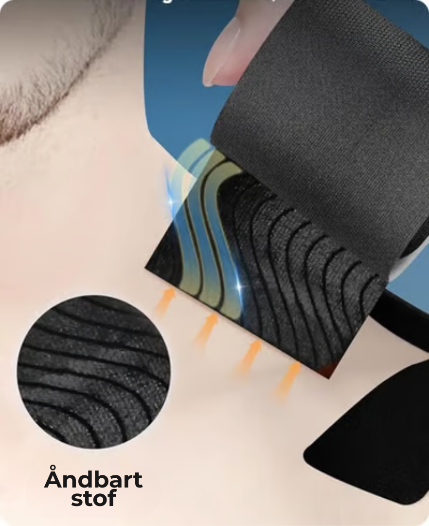 I modsætning til traditionelle bandager er vores tape lavet af fleksibelt, hudvenligt materiale, der bevæger sig med din krop. Perfekt til sportsgrene og aktiviteter med høj mobilitet som tennis, vægtløftning eller svømning.