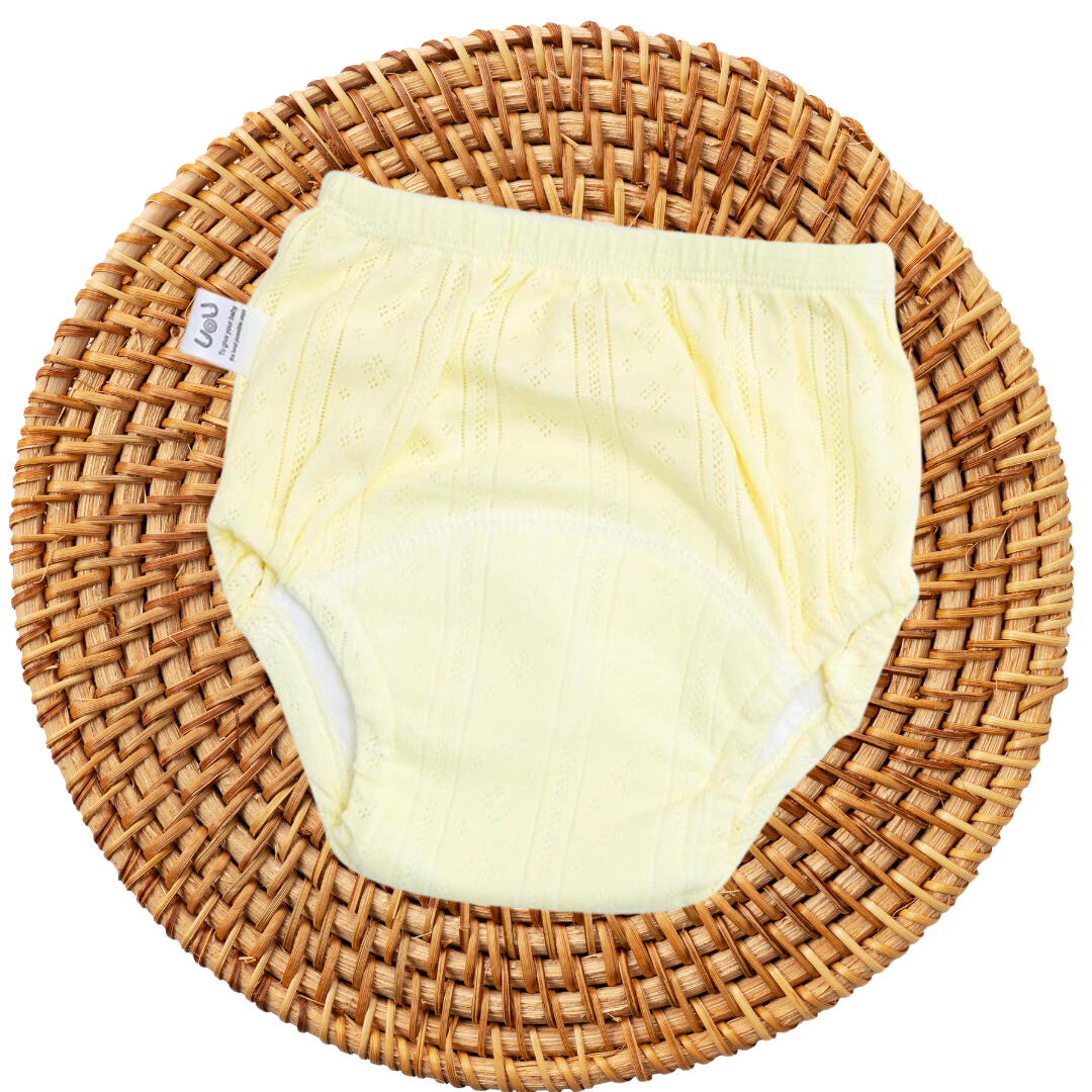 Den inderste lag absorberer kun en smule, så dit barn mærker ubehaget og motiveres til at bruge potten. Det ydre lag sikrer, at der ikke sker gennemvædning.