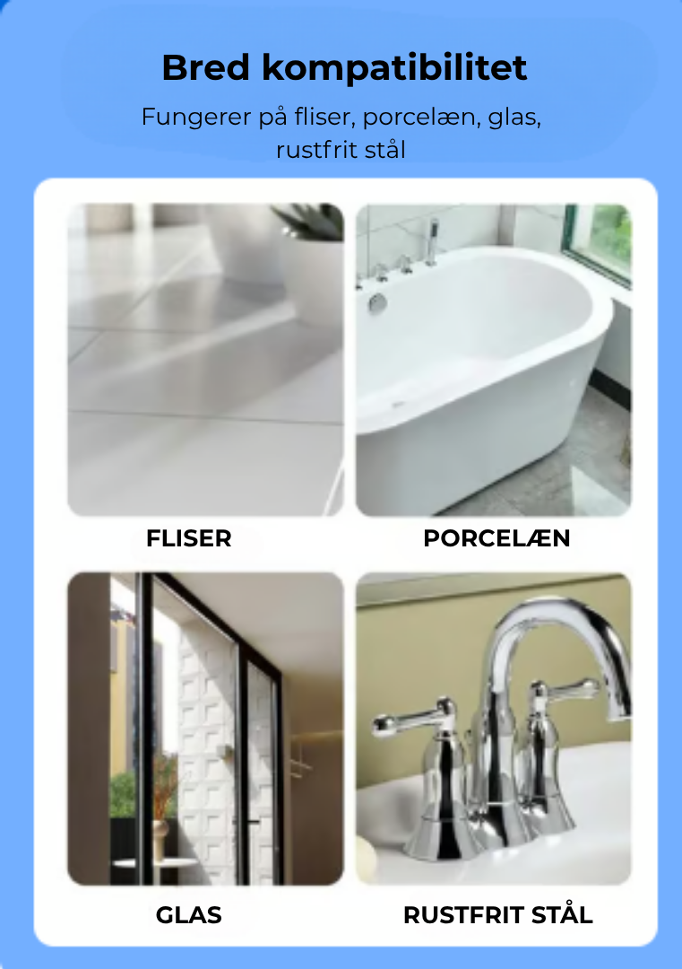✅ Kan bruges på flere overflader – fliser, håndvaske, badekar og meget mere