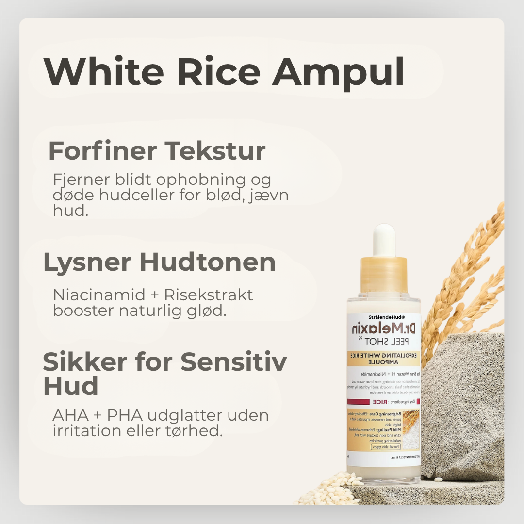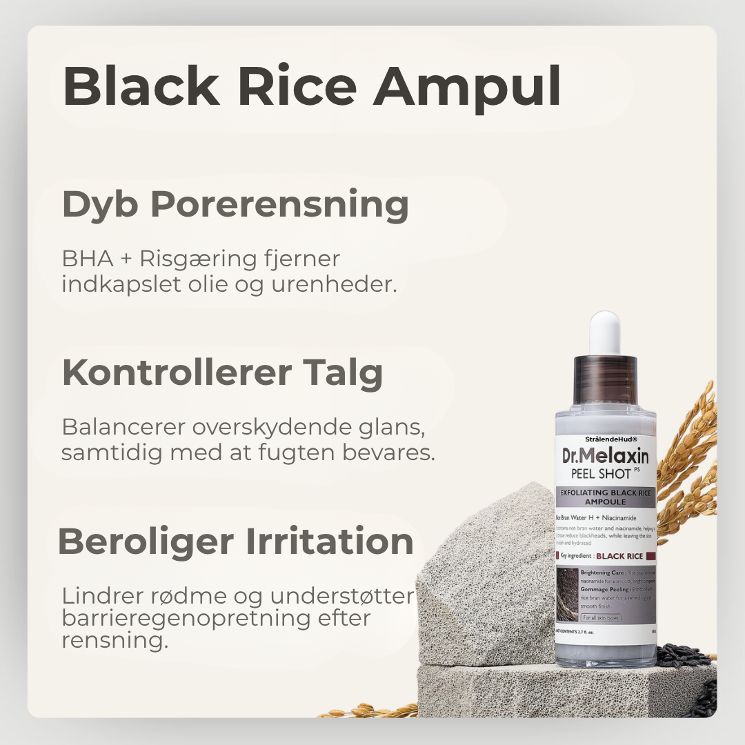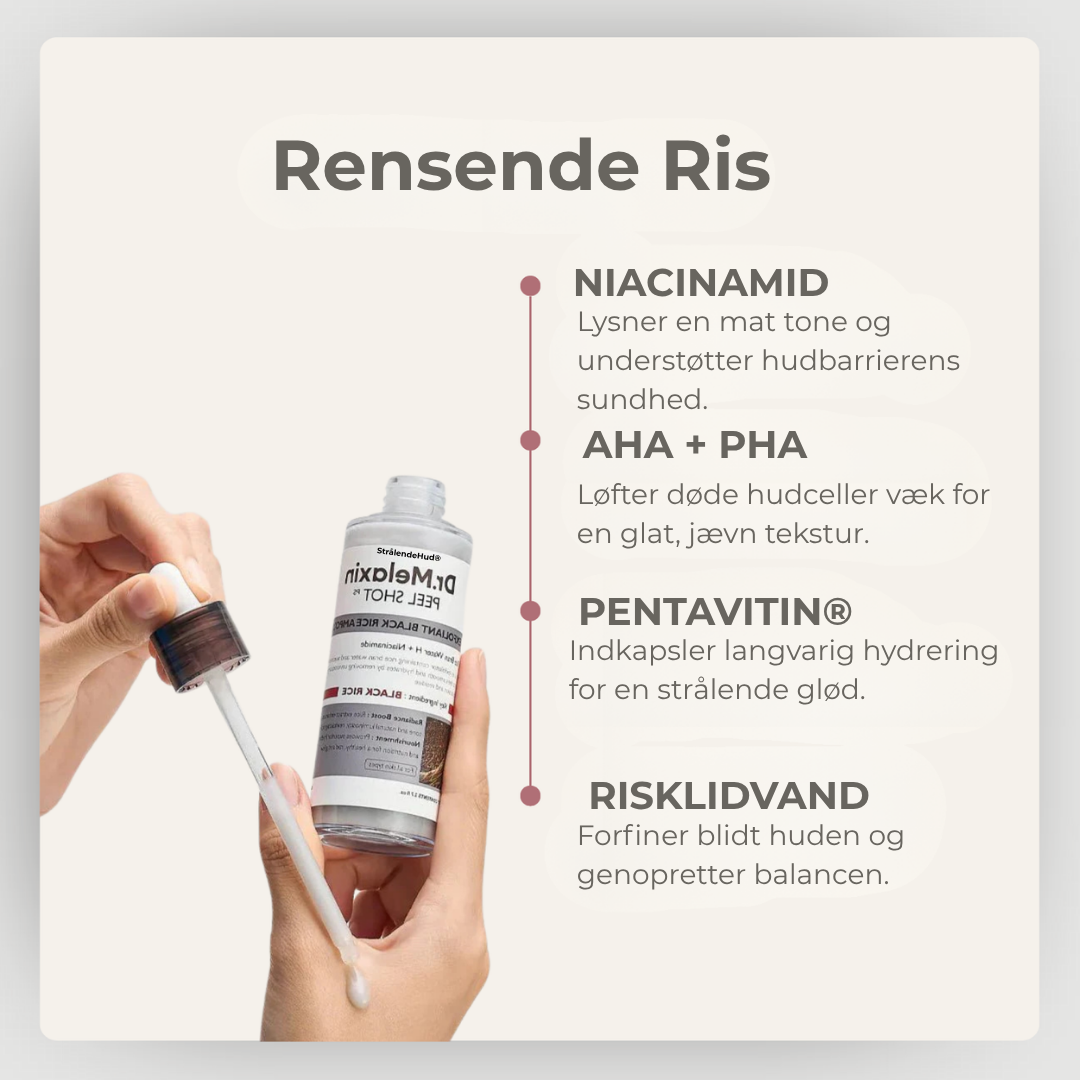 En næste-generations eksfoliant med AHA, BHA og PHA, der renser porerne og forfiner hudens tekstur, balanceret med risekstrakt og niacinamid for at fugte, lysne og beskytte hudbarrieren. Dybtgående rensning, føles skånsom – ingen prikken, ingen flager, ingen rødme.