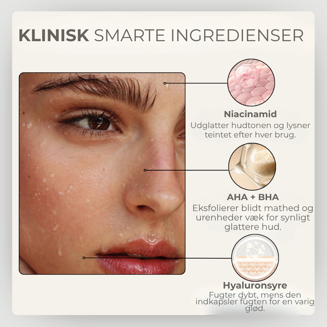 - Øjeblikkelig forbedring af hudens tekstur